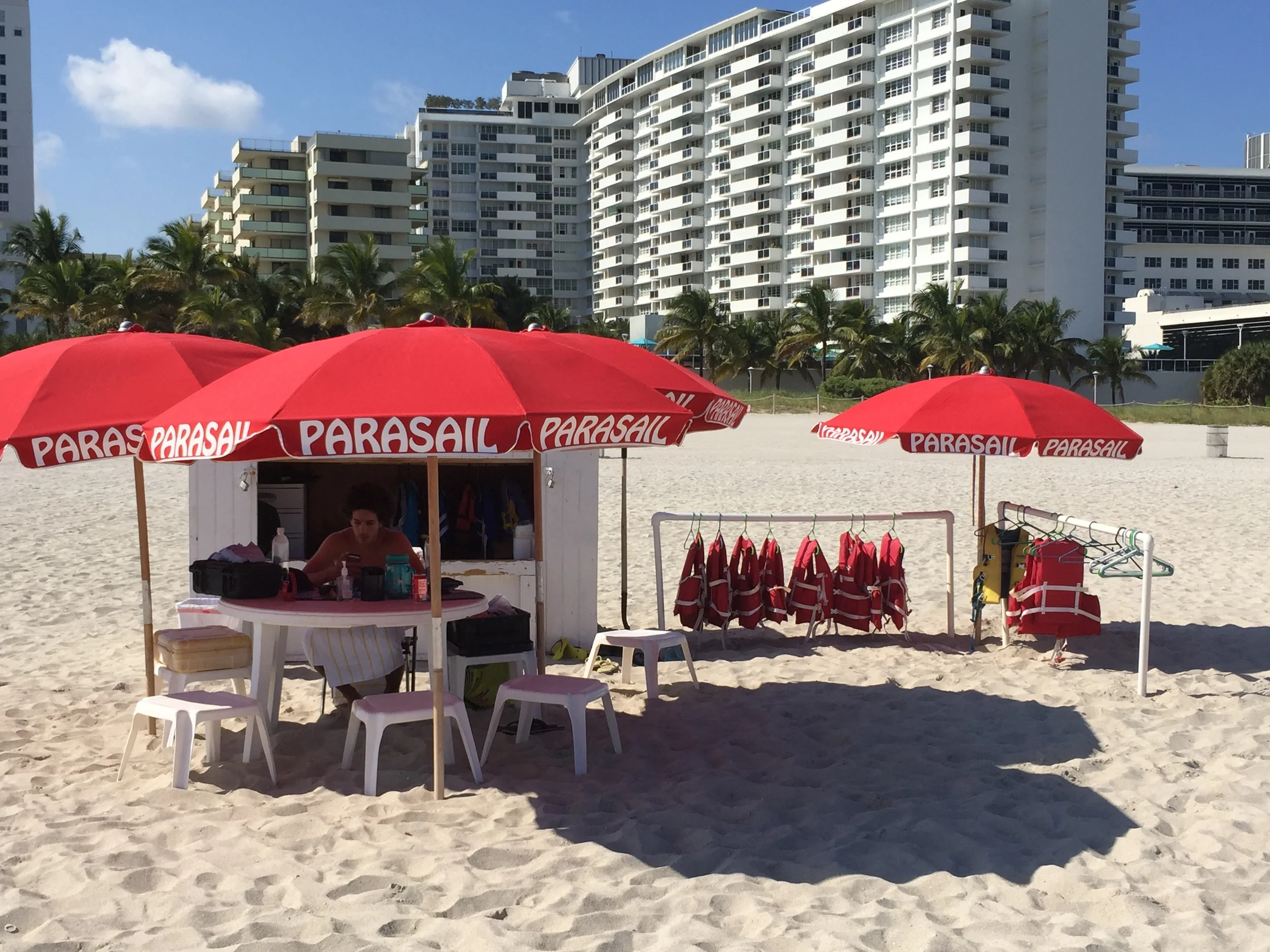 There are several parking garages within a couple blocks of our beach location. Parking and traffic can be a big challenge in Miami Beach. Plan accordingly, weekends on the beach tend to be busier than weekdays.